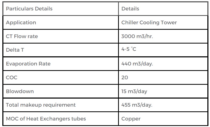 100% saving of fresh water consumption in cooling towers.