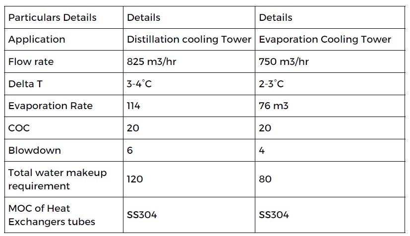 Successful utilization of wastewater in Distillation & Evaporation plant cooling tower.