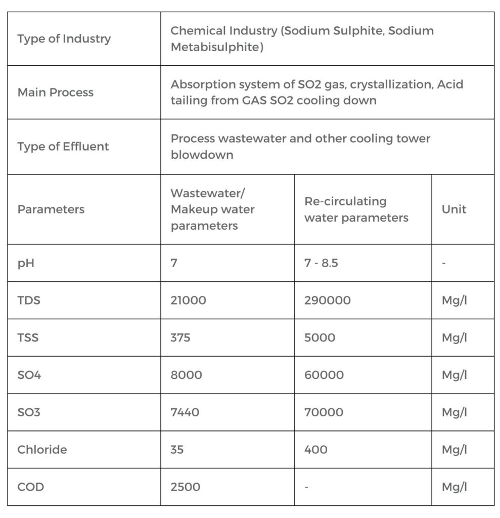 ABCTL is generating 250 m3/day Process wastewater having TDS of 20,000 ppm. As per Thai Pollution Control Board norms, ABCTL had to recycle this effluent for reuse and to achieve Zero Liquid Discharge (ZLD). Quality of this effluent was not suitable for RO hence they had no other option but to install Multi Effect Evaporator (MEE) for achieving ZLD objective. High CAPEX & OPEX was the serious concern for them to treat 250 m3/day process wastewater through Evaporator (MEE)