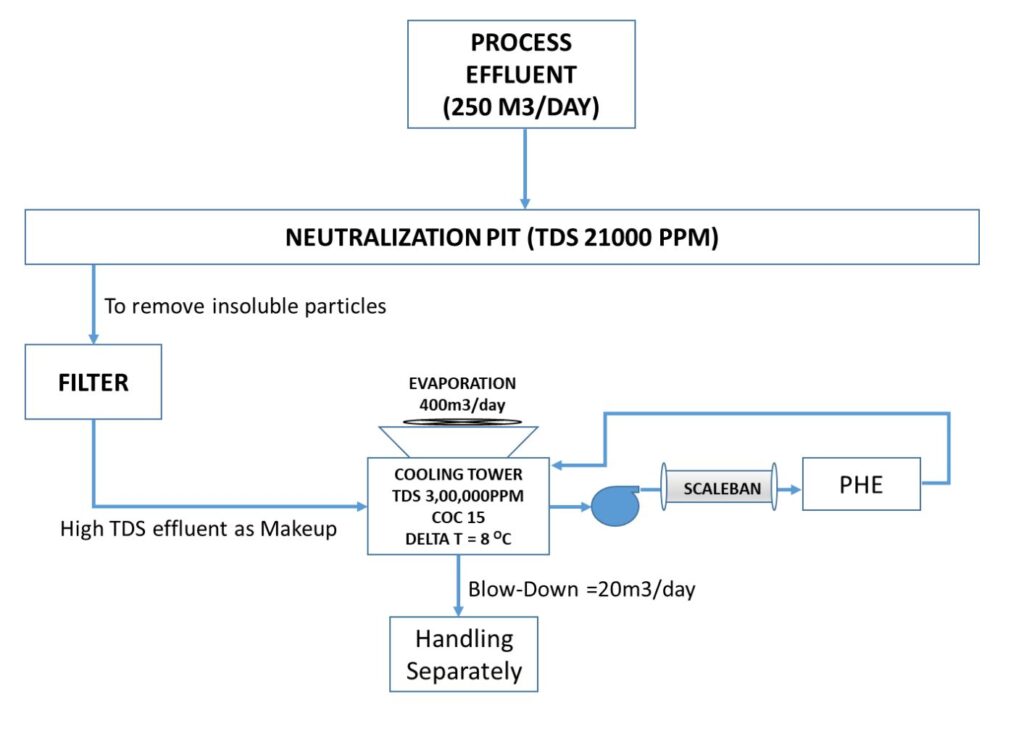 ABCTL installed 27 nos. of “ENVIROSUN” equipment at the cooling water inlet of different process plant heat exchangers in Feb 2019 to utilize 250 M3/Day process effluent (Waste Water) as makeup in place of fresh water at their main process plant cooling tower. After implementation of “ENVIROSUN” Equipment at the inlet of 27 nos. process heat exchangers (PHEs) and by using “ENVIROSUN” Specialty chemicals in cooling towers, ABCTL is successfully using wastewater in their process plant cooling tower and operating it at 3,00,000 PPM TDS(30%). Due to high COC operation of cooling tower ABCTL is giving only 20 m3/day blowdown having 30% TDS which they are sending to authorized agency in Thailand to handle it separately. ABCTL could manage to achieve ZLD objective on a sustainable & most cost-effective basis by installing “ENVIROSUN” technology without implementing costly conventional evaporation (MEE) technology.