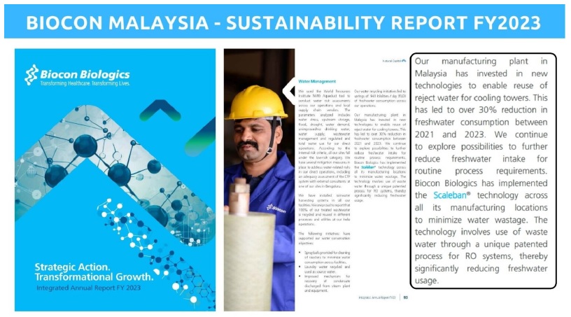 We are thankful to BIOCON Biologics, Malaysia for implementing “ENVIROSUN” Technology for achieving water conservation and the ZLD system.
